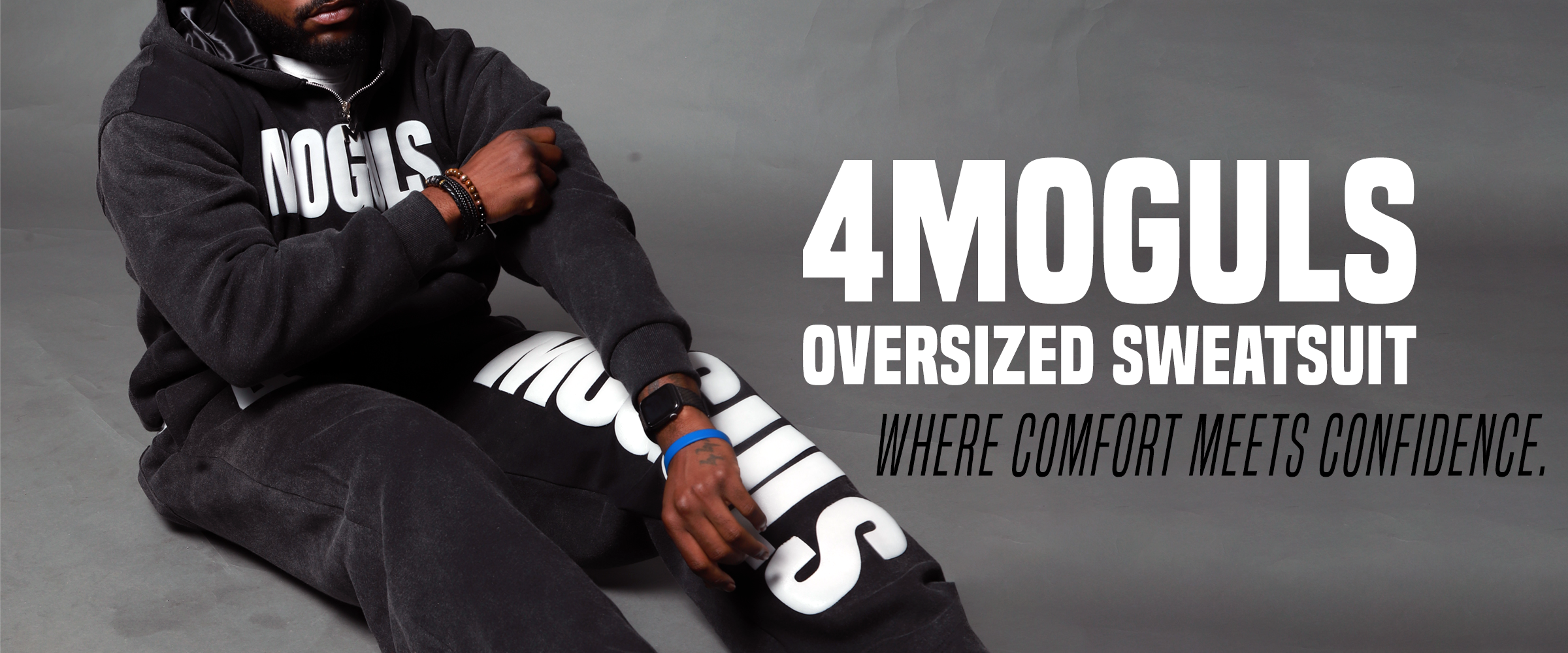 Slip into the 4Moguls Oversized Sweatsuit, engineered for presence, comfort, and luxury. This set blends heavyweight warmth with elevated details — including a satin-lined hood, a bold quarter-zip front, and our signature M zipper emblem. Designed to drape perfectly with a relaxed, confident silhouette, this is the uniform for anyone building wins from the inside out.