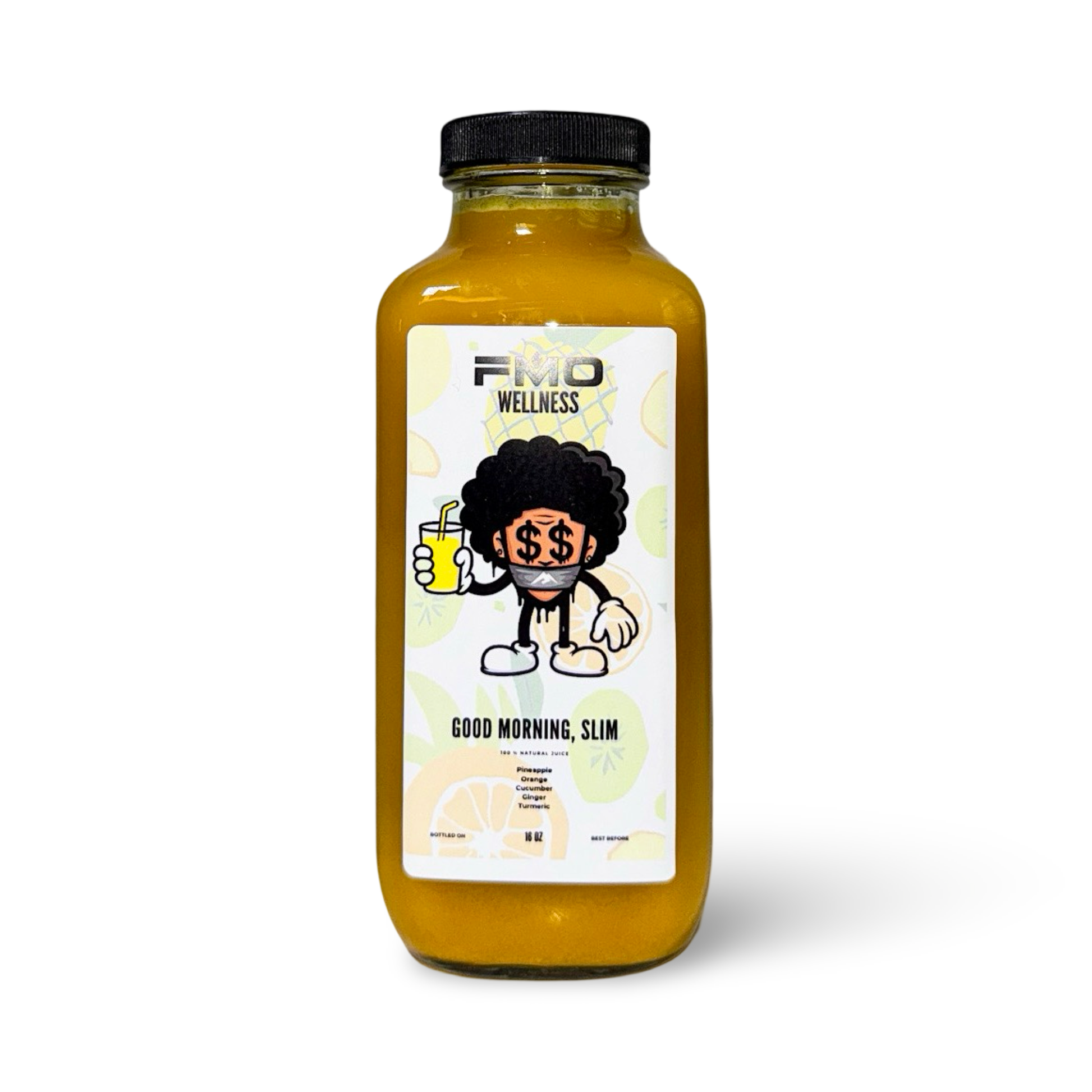 Introducing our Good Morning, Slim juice—a vibrant fusion designed to refresh, detoxify, and revitalize your body with every sip. This cold-pressed blend harnesses the power of pineapple, orange, cucumber, ginger, and turmeric to deliver a flavorful burst of nutrients and wellness benefits.
